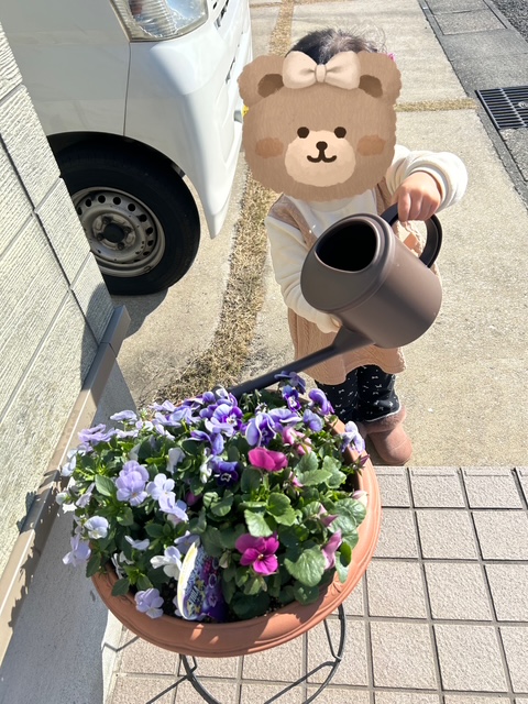 私がお花のお世話をしていると娘が「〇〇ちゃんもする~!」と言うので